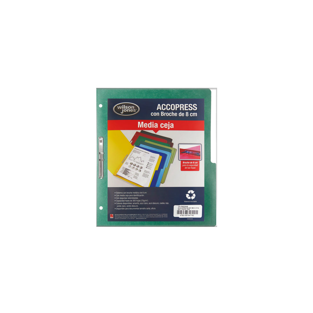 Carpeta Wilson Jones pressboard broche sin percalina carta con 10 pzs