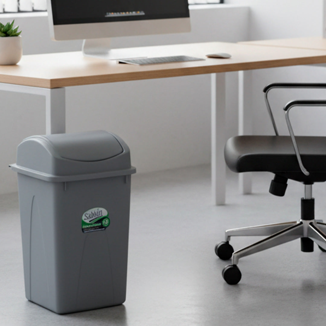 Cesto de basura 65 litros tapa de balancín mantiene ordenados los residuos en oficinas, escuelas y áreas comunes. Su tapa de balancín oculta el contenido y ayuda a controlar olores, mientras el cuerpo plástico de trabajo pesado resiste el uso diario y la limpieza constante.