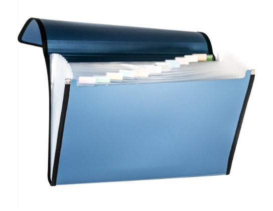 Archivero expandible oficio con 13 separaciones con liga azul metálico