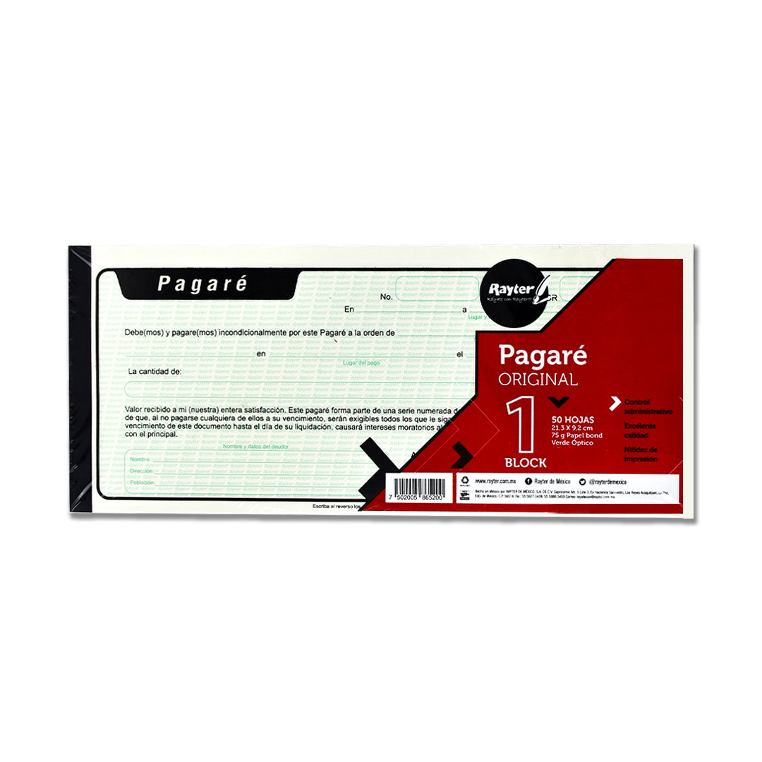 Asegura tus acuerdos de forma clara y profesional con el Block Pagaré Rayter con 50 Hojas. Este block diseñado para trámites financieros y civiles ofrece un formato compacto de tamaño 1/3 carta, con papel de tono verde óptico que transmite formalidad. Ideal para oficinas, despachos o gestores que requieren formularios listos para usar, combina practicidad y presentación cuidada bajo la confianza de la marca Rayter.