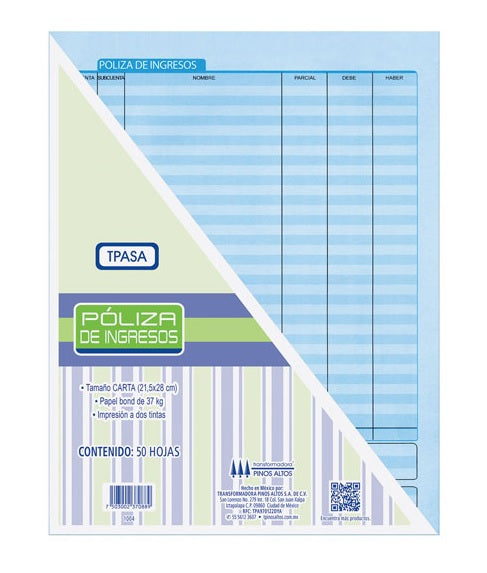 Optimiza la gestión de tus ingresos con el Block póliza de ingresos Pinos Altos paquete con 3 piezas con 50 hojas cada uno, diseñado para llevar un control claro, ordenado y profesional de tus entradas económicas. Cada hoja está lista para registrar datos clave de forma rápida y fiable, en un formato ideal para oficina o negocio. Este paquete triple asegura que siempre tengas el block listo cuando lo necesitas.