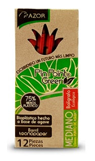 Con el Bolígrafo Azor Pin Point Green punto mediano 6860 caja con 12 piezas llevas a tu escritura un aliado ecológico y de alto performance. Su tinta de baja viscosidad fluye al instante, ideal para apuntes, firma o trabajo diario. El diseño incluye un barril fabricado con bioplástico a base de agave y un 75 % menos de plástico convencional, lo que lo convierte en una opción más sustentable sin sacrificar calidad. Perfecto para oficina, escuela o casa: escribe con precisión y conciencia.