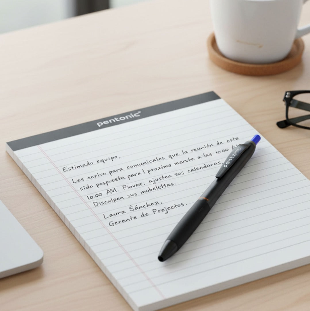 Con su mecanismo retráctil, disfruta de la escritura suave y continúa sin interrupciones. La tinta de secado rápido asegura que cada palabra quede impecable, mientras que su diseño ergonómico ofrece una experiencia de escritura cómoda y sin esfuerzo.