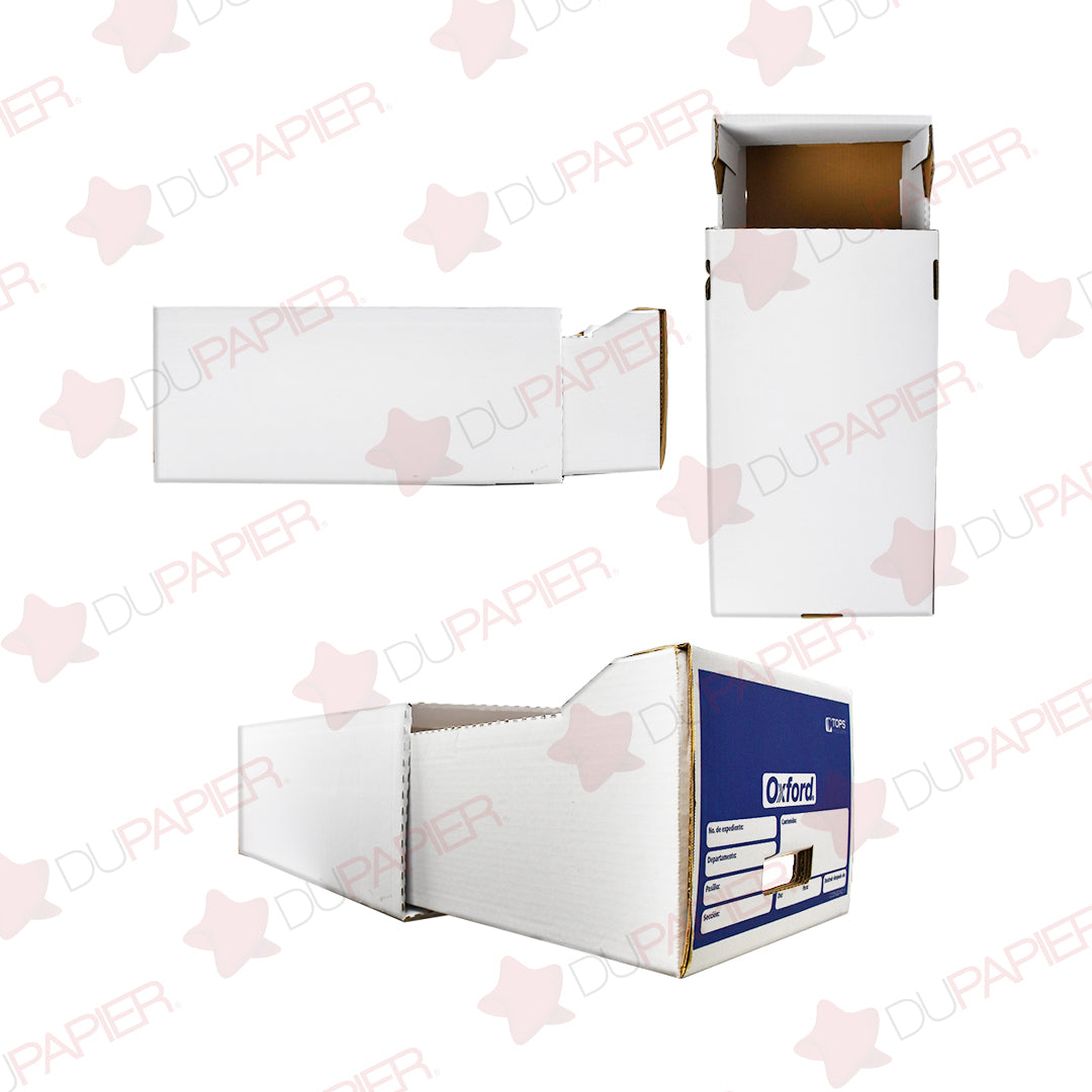 Caja de cartón deslizable color blanco para guardar todo tipo de archivos. Cuenta con triple refuerzo al frente e interior para asegurar un mayor resguardo de tus documentos.Características especialesTamaño: Carta / Oficio Material: Cartón Color: BlancoCalibre: Medidas: 65 x 31.5 x 24 cm y 65x39.5x26.5cmResistencia: Otras características: Volumetría: Volumen m3: Peso (kg): Recomendado para: