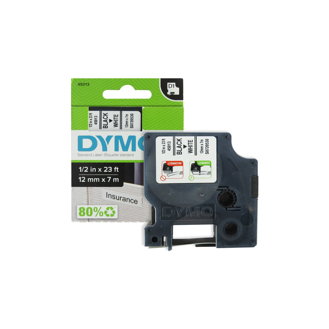 Cinta Dymo elec. 45013 negro sobre blanco 12 mm