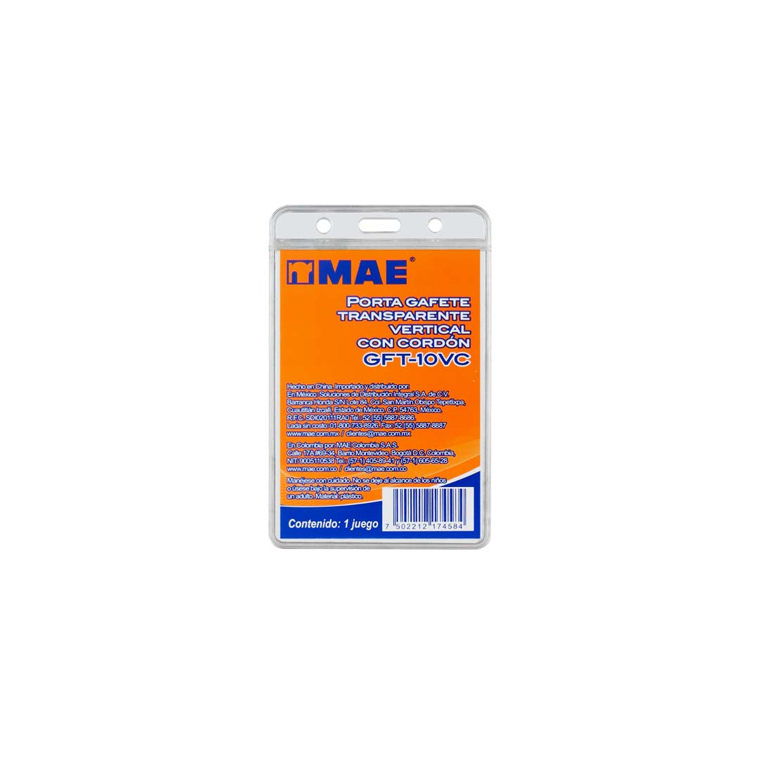Gafete transparente vertical MAE para portar credenciales, identificaciones o tarjetas con el mejor estilo.