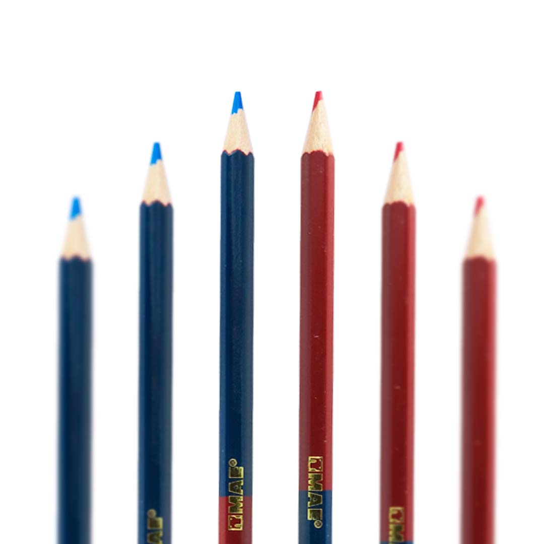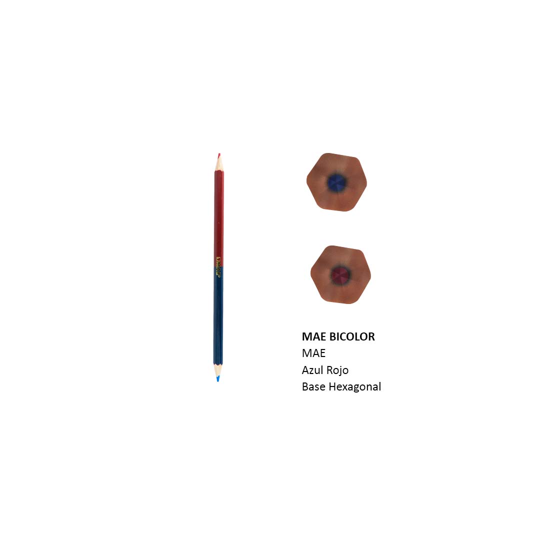 Lápiz Bicolor Mae con punta resistente que te permitirá escribir o dibujar por más tiempo sin interrupciones.