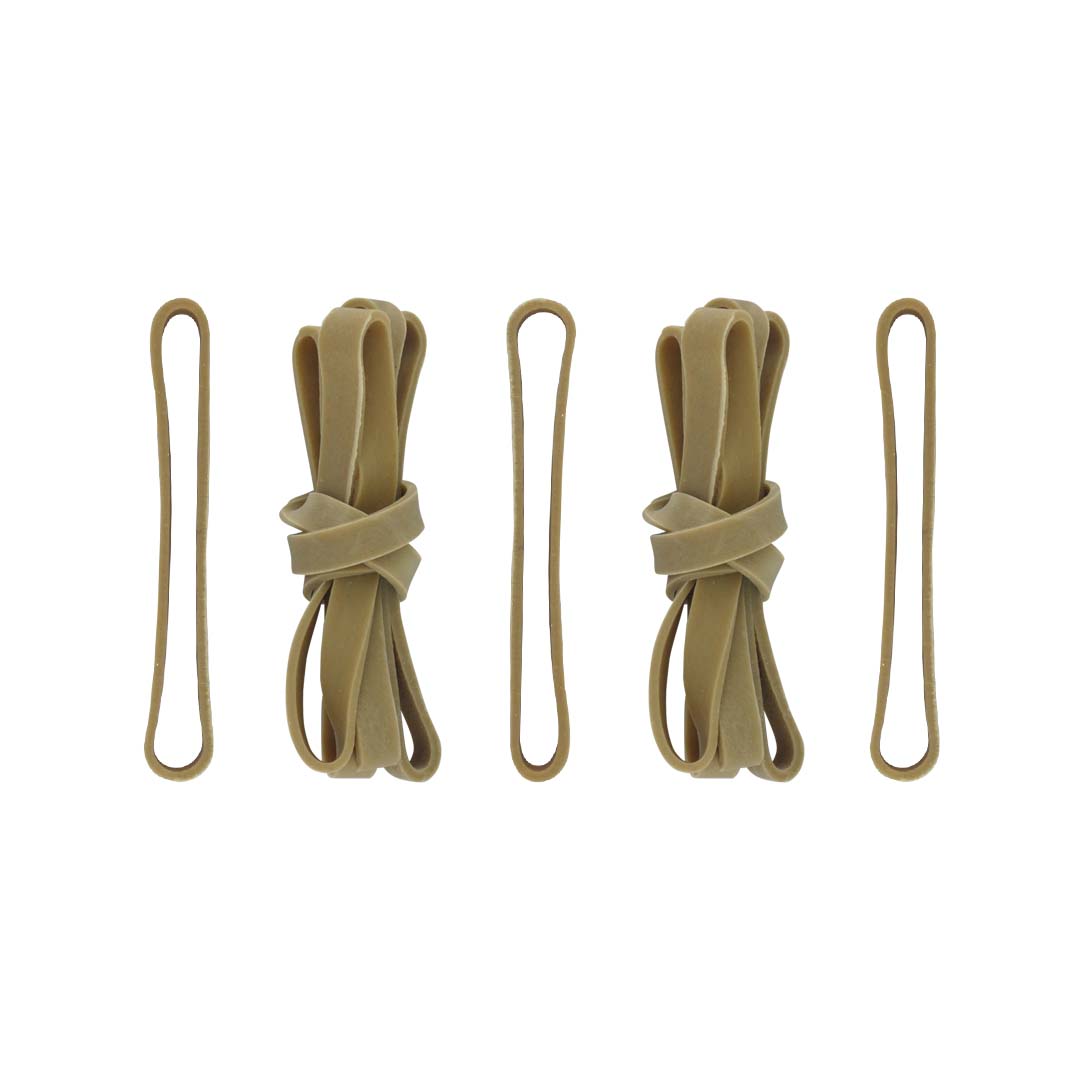 Ligas de hule León de gran resistencia, elástica y suave en su uso. Retoma su forma original después de estirarla, para múltiples usos ya sea en casa, escuela, oficina o comercio.características especiales:Color: BeigeContenido: 100 gTamaño: No.64