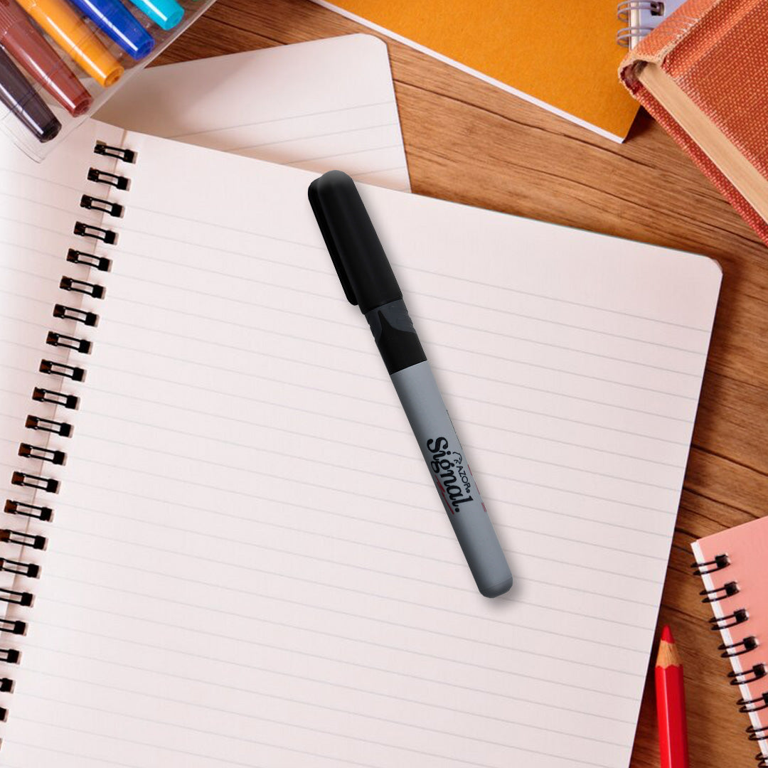 El Marcador Signal Punto Fino es fácil de usar, su tinta es a base alcohol permanente, es de secado rápido y resistente al agua. Es ideal para marcar en vidrio, porcelana, metal, tela, madera, plástico, cartoncillo, etc. Su tinta tiene un rendimiento de escritura de 430 metros.