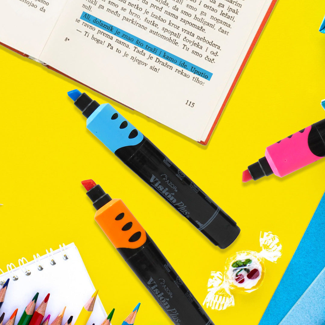 Marcatextos resaltador Azor Visión plus con 5 piezas