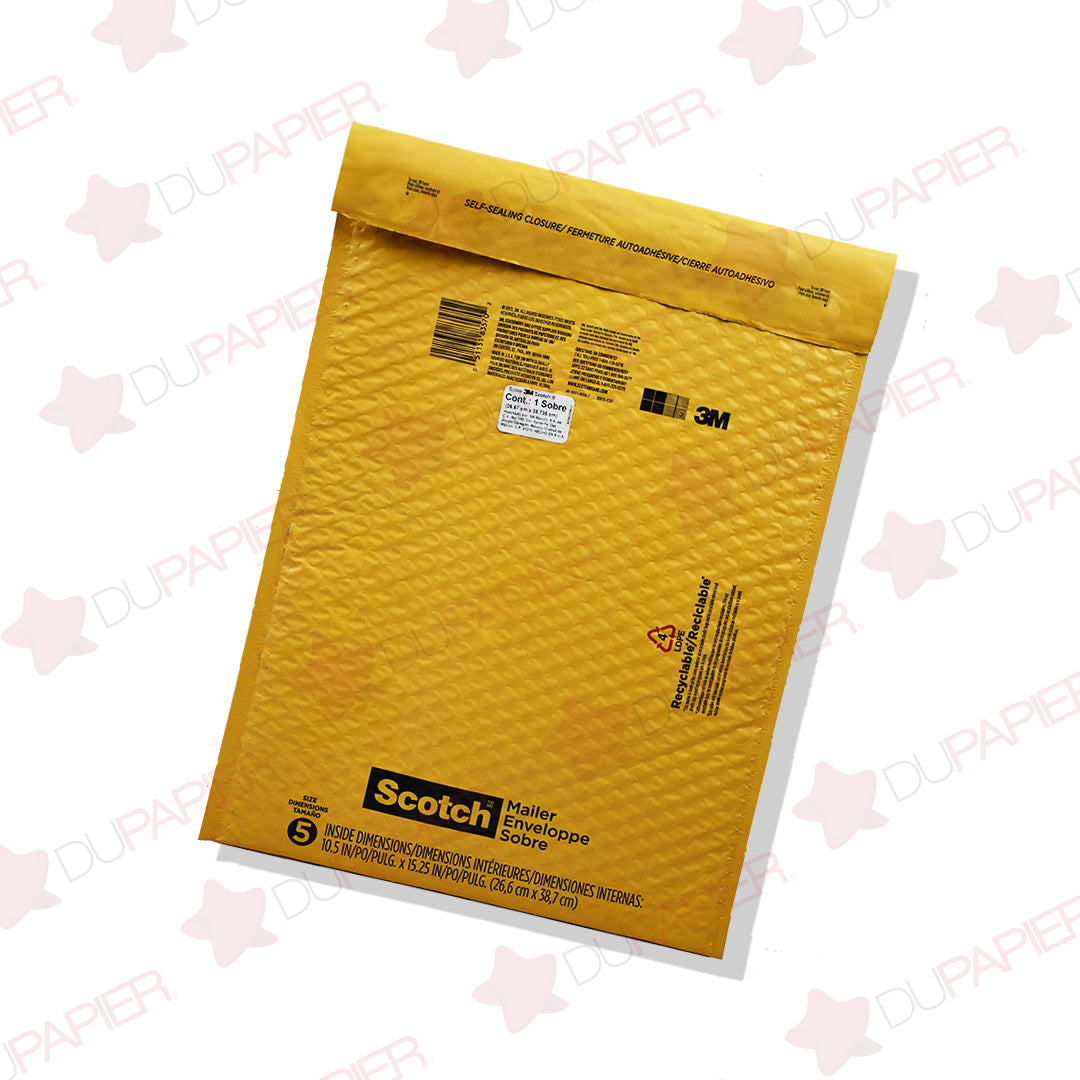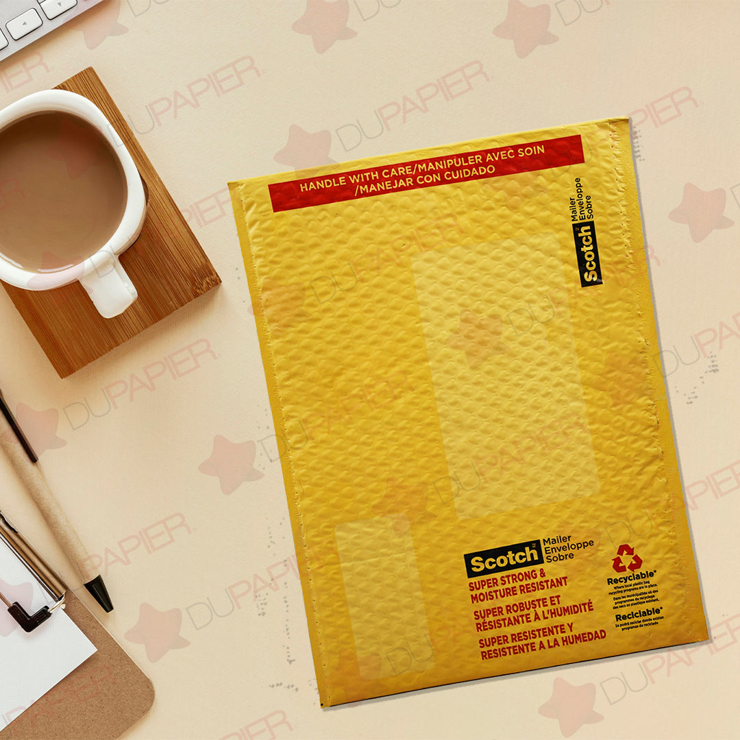 Sobre de envío con envoltura de plástico burbuja Scotch 3M amarillo.
